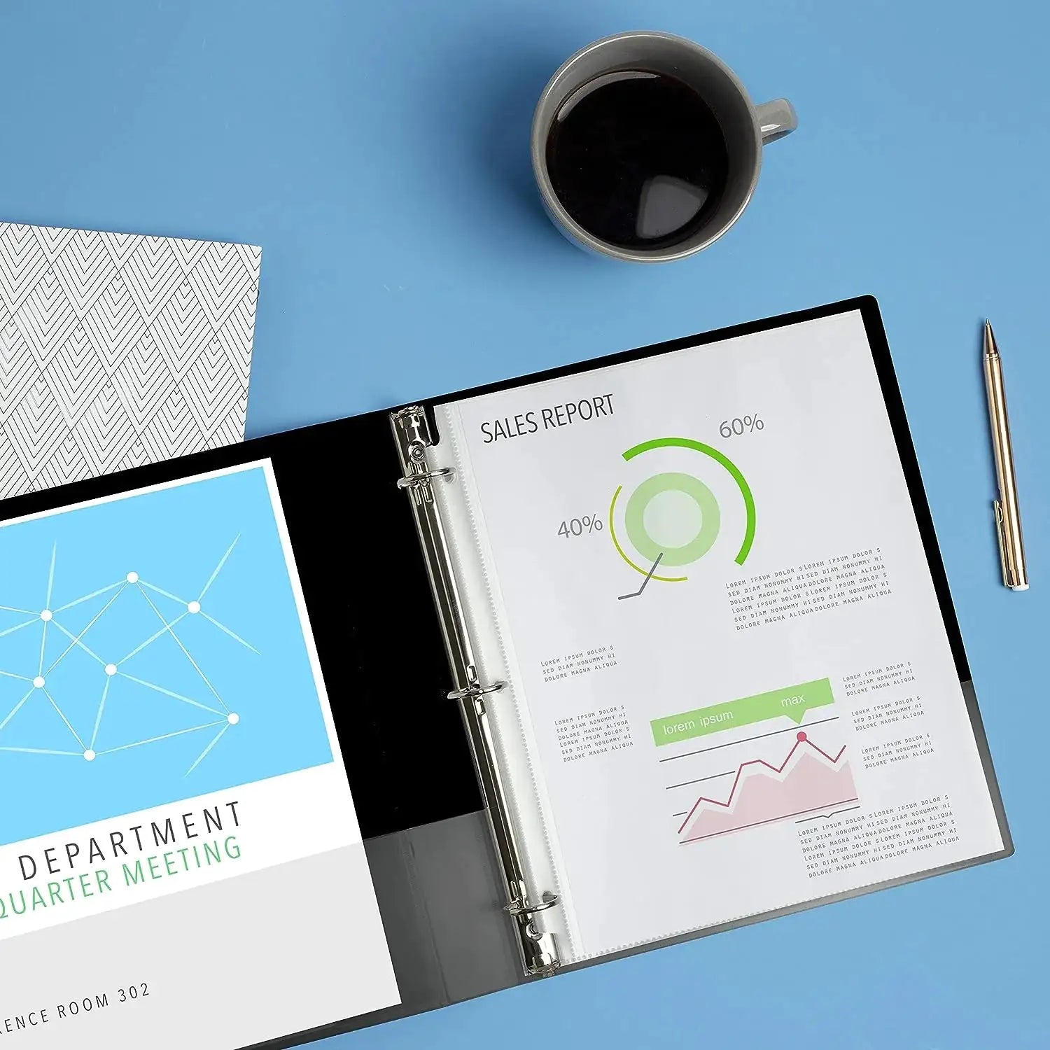 The "3 Ring Binder - 1" blue is a versatile and stylish organizational tool designed to keep your documents and papers securely in place. This product features a sturdy three-ring mechanism that allows for easy insertion and removal of standard 8.5" x 11" sheets, making it perfect for presentations, reports, and school projects.